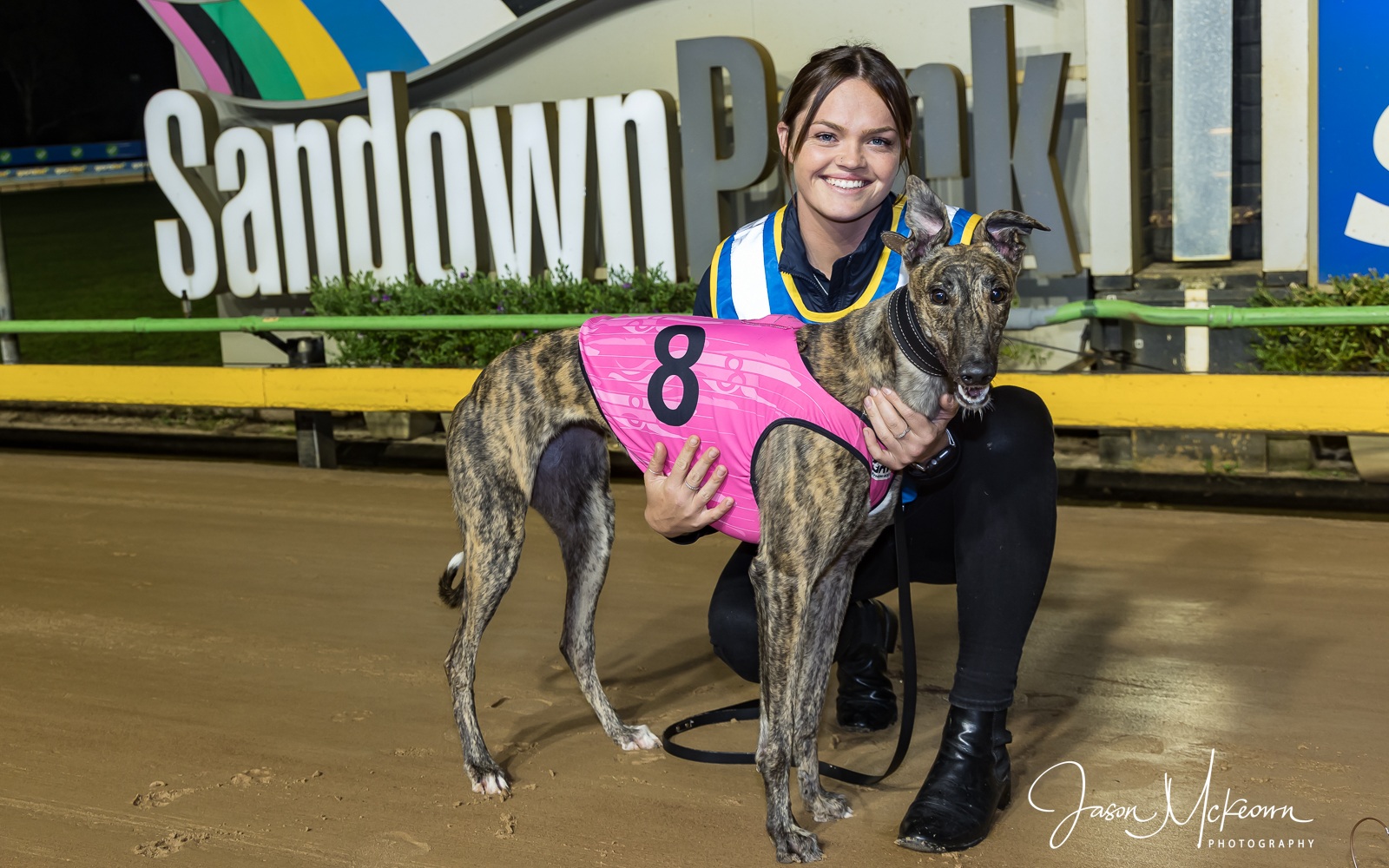 2025 winner Çanya Mayhem with trainer Jess Hopkins